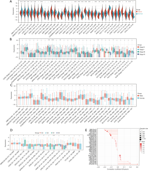 The analysis revealed that SPAG6 expression was upregulated in 11 cancers [kidney renal papillary cell carcinoma (KIRP), LIHC, high-risk Wilms tumor (WT), OV, pancreatic adenocarcinoma (PAAD), uterine carcinosarcoma (UCS), acute lymphoblastic leukemia (ALL), acute myeloid leukemia (LAML), pheochromocytoma and paraganglioma (PCPG), adrenocortical carcinoma (ACC), and CHOL] and downregulated in 17 cancers [glioblastoma multiforme (GBM), glioma (GBMLGG), brain lower-grade glioma (LGG), UCEC, breast invasive carcinoma (BRCA), CESC, lung adenocarcinoma (LUAD), pankidney cohort (KIPAN), colon adenocarcinoma (COAD), colon adenocarcinoma/rectum adenocarcinoma esophageal carcinoma (COADREAD), kidney renal clear cell carcinoma (KIRC), lung squamous cell carcinoma (LUSC), skin cutaneous melanoma (SKCM), THCA, rectum adenocarcinoma (READ), testicular germ cell tumors (TGCT), and kidney chromophobe (KICH)] (Figure 2A). Tumor stage showed a correlation with SPAG6 expression in seven cancers (KIRP, KIPAN, UCEC, LUSC, OV, TGCT, and UCS) (Figure 2B). Gender-based differences in SPAG6 expression were observed in five cancers, with higher expression in male patients in the stomach and esophageal carcinoma (STES), stomach adenocarcinoma (STAD), KIRC, and LUSC and higher expression in female patients in ACC (Figure 2C). SPAG6 expression also varied with tumor grade in seven cancers [GBMLGG, LGG, CESC, STES, STAD, head and neck squamous cell carcinoma (HNSC), and LIHC] (Figure 2D). Age-based differences in SPAG6 expression were found in six cancers, with a positive association in thymoma (THYM) and TGCT and a negative association in GBMLGG, CESC, KIRP, and prostate adenocarcinoma (PRAD) (Figure 2E).
