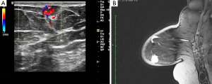 - Mesurolle B, Sygal V, Lalonde L, et al. Sonographic and mammographic appearances of breast hemangioma. AJR Am J Roentgenol 2008;191:W17-22. [Crossref] [PubMed]