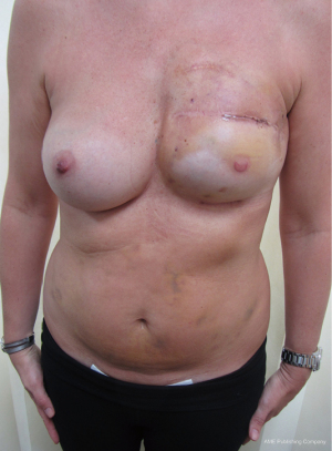 The inherent risks of aggressive surgery have been known by surgeons for centuries (29), but contemporary improvement in the management of breast cancer has enabled reconstructive surgeons to greatly improve the wellbeing of many women and deliver acceptable aesthetic outcomes. However, breast reconstruction is an expensive and demanding procedure and can be problematic, with a significant morbidity in some patients. Any advance in breast cancer research that could reduce dependence on surgery should be encouraged. An increased understanding of the pathology, earlier diagnosis, advances in genomics, tissue engineering and especially research into exosomes, genetics and anti-tumour vaccines could be the future. The latter has shown potential in successfully treating some solid malignancies with little collateral damage to normal tissues (30-32) and may be able to influence future management of breast cancer. Today, the ability of surgeons to transfer and revascularise composites of autologous tissues will give the best long-term outcome in women undergoing immediate mastectomy reconstruction, but is especially advantageous for women having a secondary reconstruction after radiotherapy.