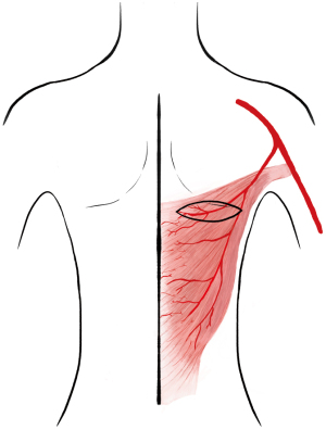 Plastic surgery started as a specialty because of celebrated pioneering reconstructive surgeons such as McIndoe and Gillies during the world wars (5), they only had skin grafting and local, regional or waltzing tube pedicle flaps as options for reconstruction. The specialty was much in demand and the British association of plastic surgeons was formed in 1946 with Sir Harold Gillies as president. The British Journal of Plastic Surgery first published in 1948 with AB Wallace as editor. The generation of McIndoe and Gillies were aware of the axial blood supply to skin by known vessels, such as the intercostals, that allowed extended length of skin flaps well beyond the 1:1 base to length ratio limit of random pattern flaps. The donor site usually was skin grafted, giving poor cosmesis. The challenge for that generation of plastic surgeon was to cover an exposed tissue that could not take a skin graft because of poor blood supply and fibrosis, typically seen in patients with post radiotherapy necrosis and exposed rib. They called this breast ‘replacement’ rather than breast ‘reconstruction’ because they understood that replicating the lost breast was not aesthetically possible. Little was known of the ‘vascular territories’ of perforators until described by Palmer and Taylor in 1987 (6).