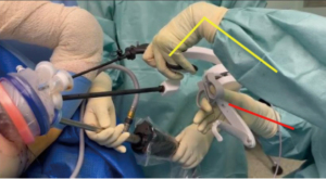 This contrast (Figures 5,6) highlights the ergonomic advantage of articulating instruments in maintaining neutral joint positions.