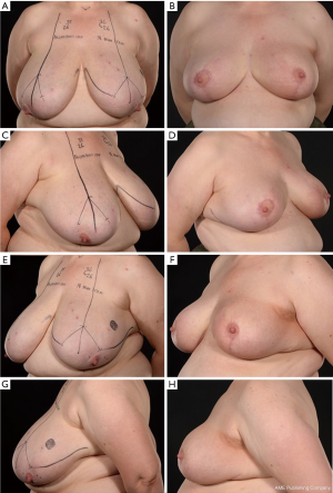 - Losken A, Hart AM, Broecker JS, et al. Oncoplastic Breast Reduction Technique and Outcomes: An Evolution over 20 Years. Plast Reconstr Surg 2017;139:824e-833e. [Crossref] [PubMed]