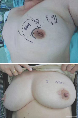 All patients underwent examinations on follow-up visit, including physical palpation and ultrasonography-at a frequency of 1, 3, 6 months, 1 year respectively after surgery and annually after 1 year. Some patients should take another breast MRI scanning if the diagnosis of ultrasonography was uncertain.