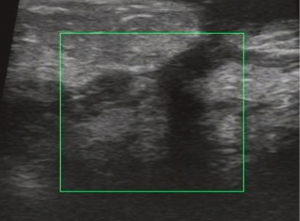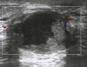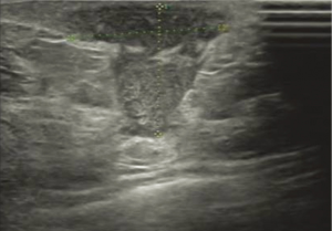 USG showed ill-defined, hypoechoic, heterogeneous lesions in most of the patients with GLM. Sometimes the breast lesion had specific signs including ‘Funnel sign’, ‘tunnel sign’ or ‘quicksand sign’, while it complicated with abscesses (Figures 4-6). According to the previous experience (5,11), 26 patients underwent mammography in our early study, which did not show characteristic signs of the lesion. In late study, patients did not had mammography as a routine examination because of its limitations such as the aggravation of the pain after mammography.
