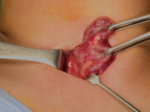 Historically, conventional open thyroidectomy (COT) is the most commonly used method for open thyroid surgery, which is still the gold standard (8). COT allows exposure of both thyroid lobes, and to perform central compartment neck dissection. However, COT normally requires a long collar incision (that is usually 5–8 cm in length), wide skin flaps on the anterior neck, and a long midline opening of the strap muscles (to provide exposure of the thyroid glands) regardless of the extent of thyroidectomy planned. This conventional approach often results in a wide neck scar and a variety of potential complications related to skin flaps and vertically opening the strap muscles. This invasive procedure, therefore, can negatively impact a patient’s quality of life (9).