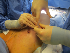 Consistently with the data reported in the literature, also the infection rate is lower in the group of patients operated with the Alexis device. However, its use prolongs the operative time, for which we recommend surgeons to allow themselves some time to become familiar with the device. The current study has only examined the use of the Alexis wound protector/retractor with round textured implants. A further study investigating the use of this device with different types of breast implants would be very interesting.