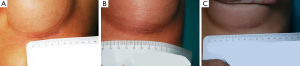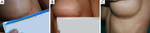 - Scuderi N, Dessy LA, Buccheri EM, et al. Phase 2 cross-over multicenter trial on the efficacy and safety of topical cyanoacrylates compared with topical silicone gel in the prevention of pathologic scars. Aesthetic Plast Surg 2011;35:373-81. [Crossref] [PubMed]